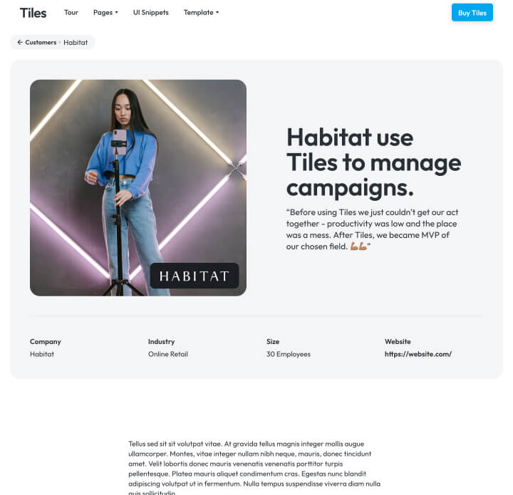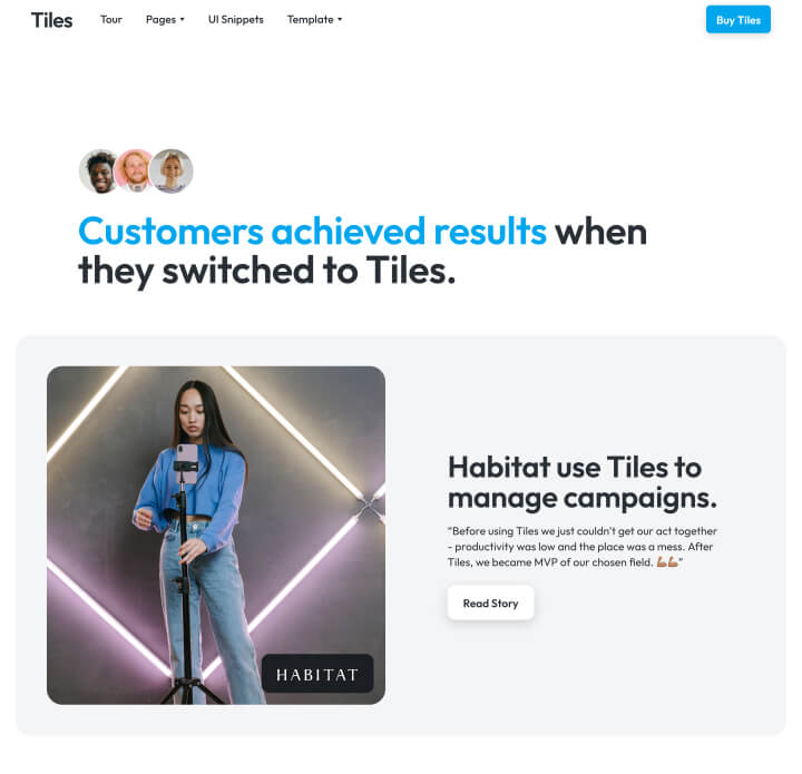 Launch a SaaS showcase in style with Tiles. Launch a SaaS showcase in style with Tiles. Launch a SaaS showcase in style with Tiles.